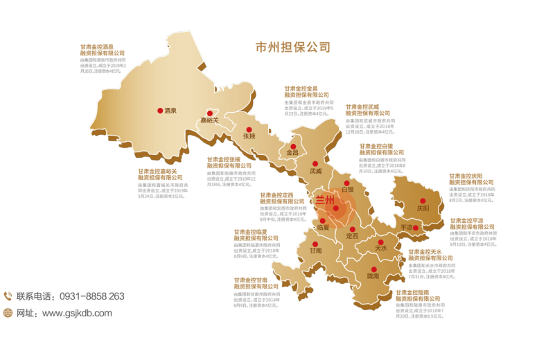 金控担保成立于2018年5月18日,注册资本金100亿元,资本实力位居全国担保机构第一梯队,控股13家市州担保公司,构建了以金控担保为龙头、市州担保为骨干、与国担基金贯通的三级融资担保体系,并在此基础上形成了政府、银行参与的五级风险分担制,开发了西北领先、全国一流的政府性融资担保信息化系统。